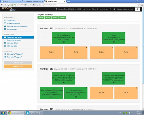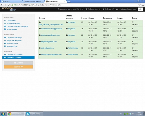 кто опять нихера не понял, можете смело уходить с этого топика, вы не поймёте никогда... такие люди груз для ТС ... А у кого есть желание зарабатывать большие деньги, до 8000 баксов в день, то пишите ТС или мне в скайп : fdeneg выплаты на платёжную систему пёрфект мани напрямую..... . Кто не верит в это, идите дальше зарабатывать на отгадывании каптч :DDDD Прикрепляю скрин своего личного кабинета моей активной команды команды, моих открытых ячеек и моих выплат