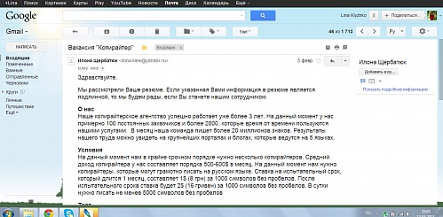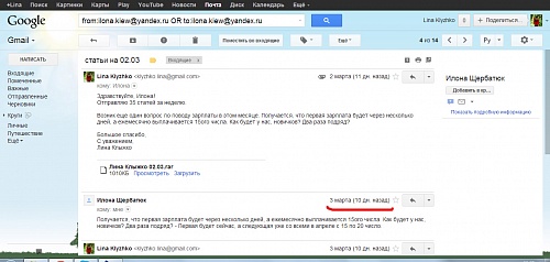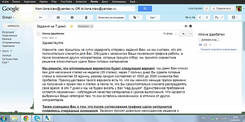 Конечно, есть. Отправляю отрывки из переписки, завтра узнаю информацию о плательщике, который оплатил мне тестовое задание на банковскую карточку.Последнее полученное сообщение от некой Илоны, датировалось 3 марта (подчеркнуто на картинке).