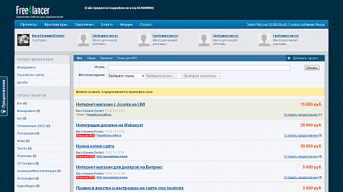 Платные услуги биржи: PRO-аккаунт, Платное размещение на главной, Закрепить проект,