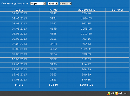 Мы ценим своих партнеров и хотим поощрить самых активных из них, тех, кто используют максимально доступное количество наших форматов для монетизации своего сайта. В настоящее время начисляются бонусы за одновременную установку всех наших форматов. Максимальный бонус +10% получат вебмастера установившие на свой сайт все 3 формата рекламы, +5% получат вебмастера использующие любые два. При установке на сайт одного из рекламных форматов(SlidingBanner или SlidingMessage или BodyClick), представленных на BinMedia начисляется сумма – в 75% от стоимости клика. При установке пары рекламных форматов – например (SlidingBanner и SlidingMessage) будет начисляться сумма в 80% от стоимости клика. При установке же всех трех форматов рекламы сумма от стоимости клика составит 85%! Данный алгоритм будет работать в случае, если количество кликов в течении прошедших суток, на менее востребованные форматы, не будут ниже порога в 10% от количество кликов, на ведущем формате. Например на SlidingBanner за прошедшие сутки получено 143 клика. Если установлено еще и SlidingMessage, и количество кликов на SlidingMessage за прошедшие сутки больше 14, то за ОБА формата начисляться 80% от стоимости на сегодняшние выплаты. Если же форматов три и у SlidingMessage не менее 15 кликов за прошедшие сутки и на формате BodyClick не менее 15 кликов за прошедшие сутки – то сумма начислений за сегодня - увеличится до 85% от стоимости кликов. |