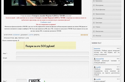 Немного о сайте, посещалка 8000(если всё норм должна подыматься), тематика кино онлайн, отказы 15 %, просмотров страниц около 15-16 тыс