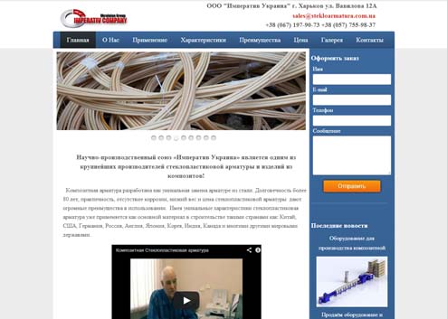 Сайт визитка компании торгующей стекло арматурой - stekloarmatura.com.ua