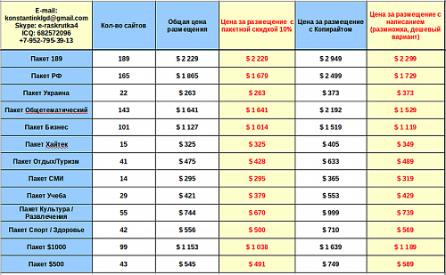 3. Варианты оплаты: Webmoney, Яндекс.Деньги, Б/н перевод.[/B]4. Срок размещения: в зависимости от объема заказа - от 1 до 4 дней.