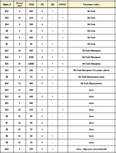 (На данный момент более 189 сайтов различной тематики, со средним показателем ТИЦ 400, PR 4)