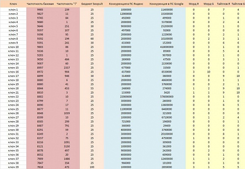 5. Дополнительные параметры в отчете (например: определение конкуренции, бюджет по сеопульту и т. д.)