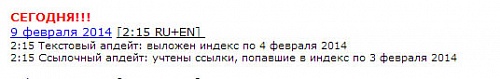 По сеопульту Текст. апдейт Яндекса - 25.00 % 2014-02-09 02:00:00