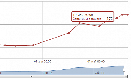 Trastcombat провел бесплатный тестовый прогон моего сайта по твиттер-аккаунтам. Сразу же после прогона Яндекс включил в поиск те страницы, которые ранее считал как с повторяющимся контентом (на графике - 15 мая).