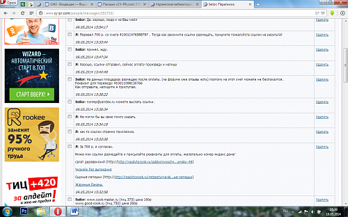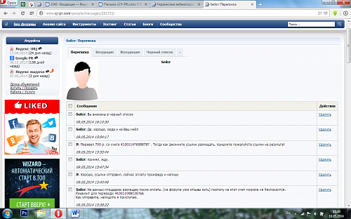 Мошенники. Не сотрудничайте с этим пользователем (я имею в виду пользователя Копирайтер с авой значок С в кружочке), он еще заходит под ником Matrix Collapse! Хотел купить 4 трастовые ссылки за 700 р. Заплатил, через 15 мин. приходит сообщение «вы внесены в черный список» теперь ни денег, ни ссылок. Будьте осторожны, сначала деньги, потом стулья