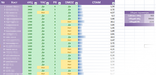 2. Вы можете составлять свои базы, или воспользоваться стандартной базой трастовых сайтов, идущей в комплекте с программой. Прилагаемая база отсортирована по различным показателям, тИЦ, PR, спамность.