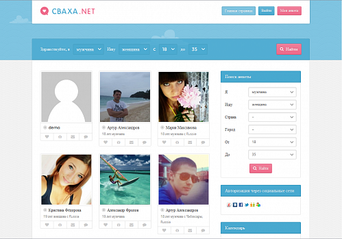 Продам сайт знакомств - Сваха.NET Социальная сеть для группы людей которые в активном поиске своей второй половинки. Движок сайта Wordpress + модуль интернет магазина для продажи тарифов WooCommerc Rus. На сайте можно писать сообщения, дарить подарки и добавлять в избранное. Имеется возможность авторизации через социальные сети и через OpenID.
