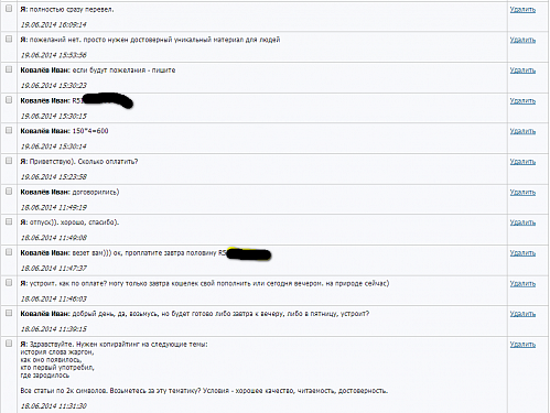 Вот кстати недавно был заказчик, Андрей Дипломов, который до сих пор не оплатил 50% стоимости услуг! Кидало конечно |