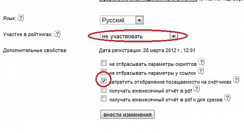 Ставим галочку «Запретить отображение посещаемости на счетчиках», а также выбираем «не участвовать» в рейтинге. Зачем вам рейтинг, если в не на первой странице? Смысла никакого нет, пока у вас не мега крутой портал. |