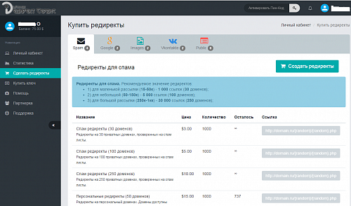 Редиректы на 250 приватных доменах, проверенных на спам листы. $8.00 1000 domain.ru/{random}/{random}.php