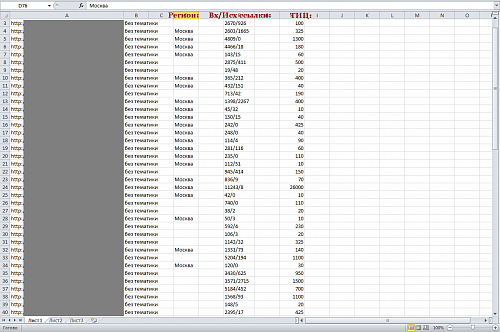 2) ТИЦ сайтов в базе от 10 до 9400.