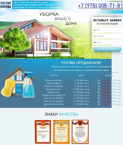 Продается готовый сайт клинингового бизнеса в Москве и области.