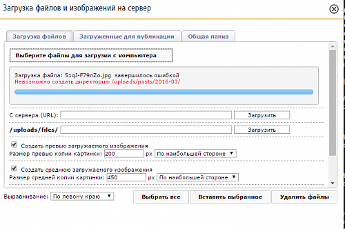| Невозможно создать директорию /uploads/posts/2016-03/ |