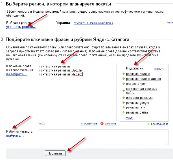 - Использование ключевых слов. Использование достаточного количества ключевых слов способно привлечь на ресурс больше пользователей, а также улучшить его место в поисковой выдаче. Яндекс.Директ оснащен инструментом "Подсказки", который упрощает работу с ключевыми словами.